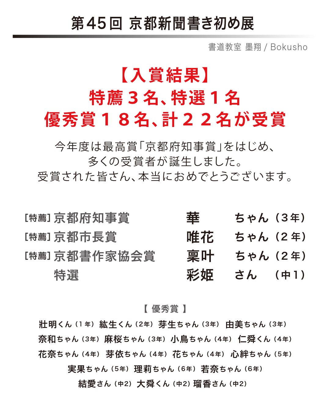今年、教室から京都府内の小中学生の中で最高賞となる