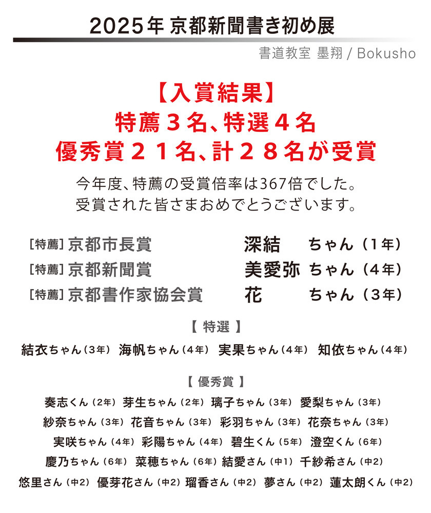 今年、教室から京都府内の小中学生の中で最高賞となる
