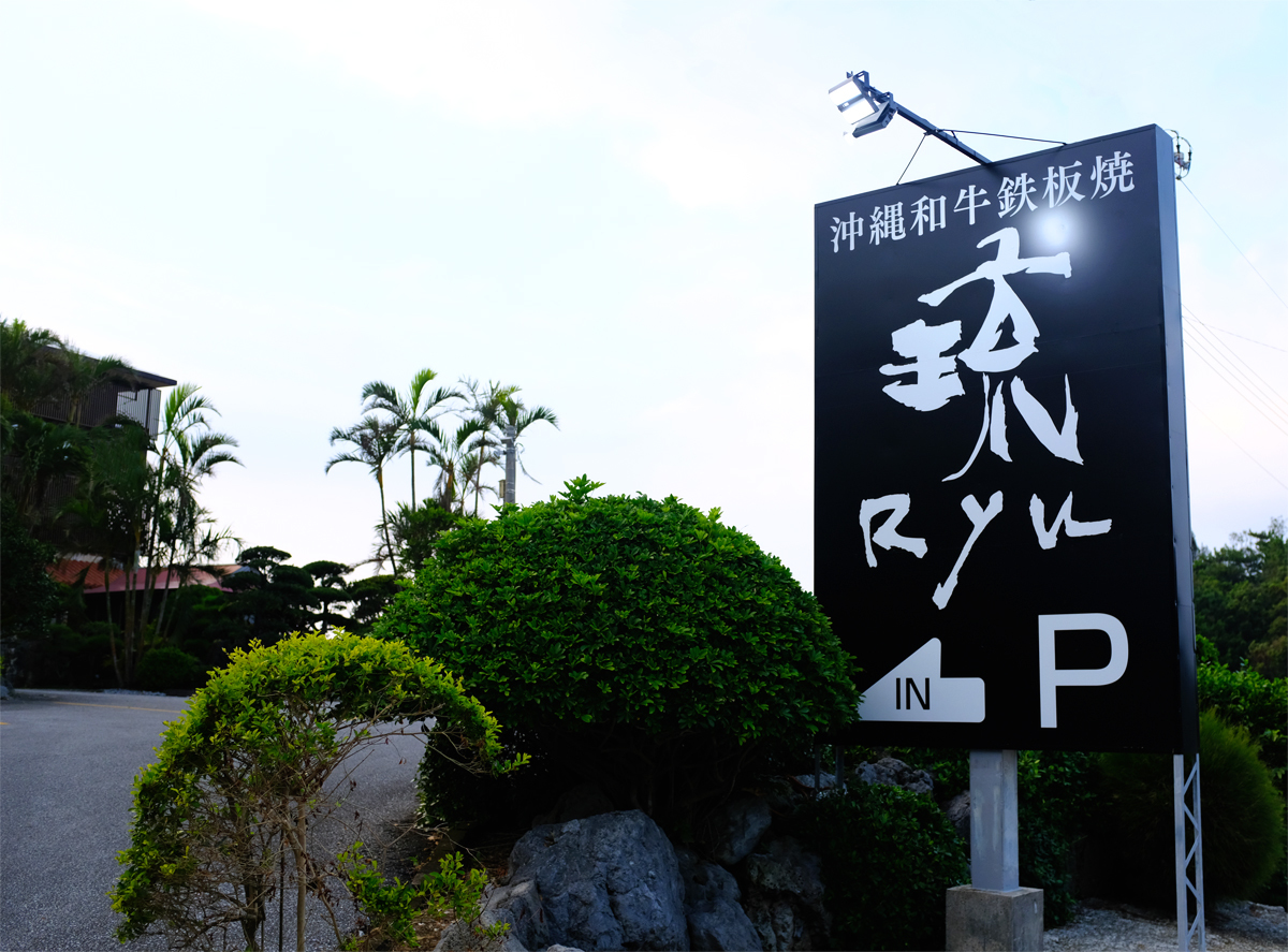 HOME > 商業デザイン書道 > 沖縄和牛鉄板焼 琉 店舗外観 店舗ロゴ / 琉 Ryu 最高級の沖縄和牛が味わえるお店 沖縄 恩納村にある『沖縄和牛鉄板焼 琉』日本庭園を眺めながら極上のステーキに舌鼓。ゆったりと寛げる鉄板焼きステーキ専門店。 【沖縄和牛鉄板焼 琉】 Design一覧へ