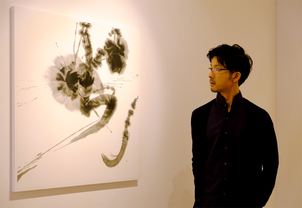 大河ドラマ「軍師 官兵衛」題字揮毫などでも知られる書家 祥洲を父に持ち、幼少より伝統的表現を基盤にした漢字・仮名・篆刻、そして現代美術まで幅広いジャンルを学ぶ。現在は煤から調合する自家製墨を使用した独自の陰影世界を模索。
