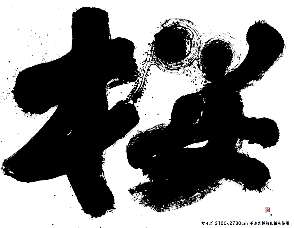 HOME > 作品紹介 > 大阪吹田 さくらまつり さくらまつり 主催:特定非営利活動法人 吹田歴史文化まちづくり協会場所:吹田歴史文化まちづくりセンター 浜屋敷 今年で8年目となる毎年4月の恒例イベント 2メートルを超える大作の展示、児童による墨絵展、そしてパフォーマンス書道など毎年様々な企画を行っています。 2018年のパフォーマンス風景 2017年発表作「心つなぐ」 過去のさくらまつり作品 右下「桜」は一枚物の手漉き和紙で揮毫 紙協賛:福井県和紙工業組合 (越前和紙) Works一覧へ