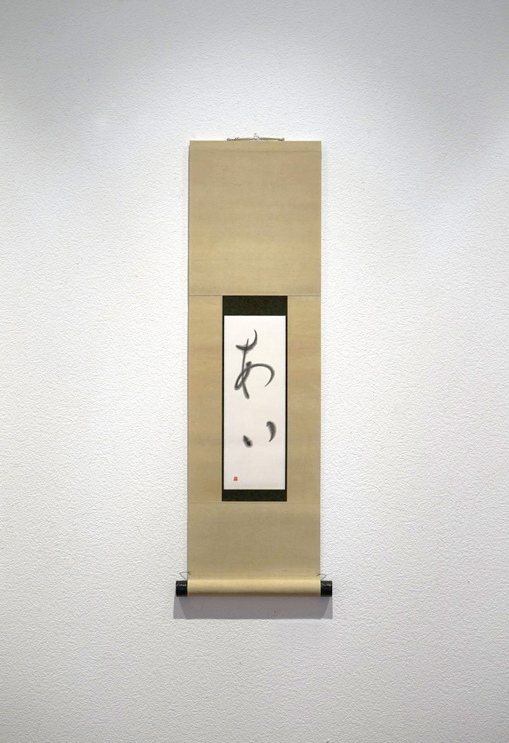 HOME > 作品紹介 > さま書2015 さまざまな書のカタチ 2015 仮名の最高峰「高野切れ」をベースとした仮名作品を発表 2015年 7月21日〜 26日 「あい」 京表具とのコラボとなる本作。掛け軸が現代建築の中でも楽しめるようサイズなどデザインしていただきました。 表具師:前田倫明 Works一覧へ