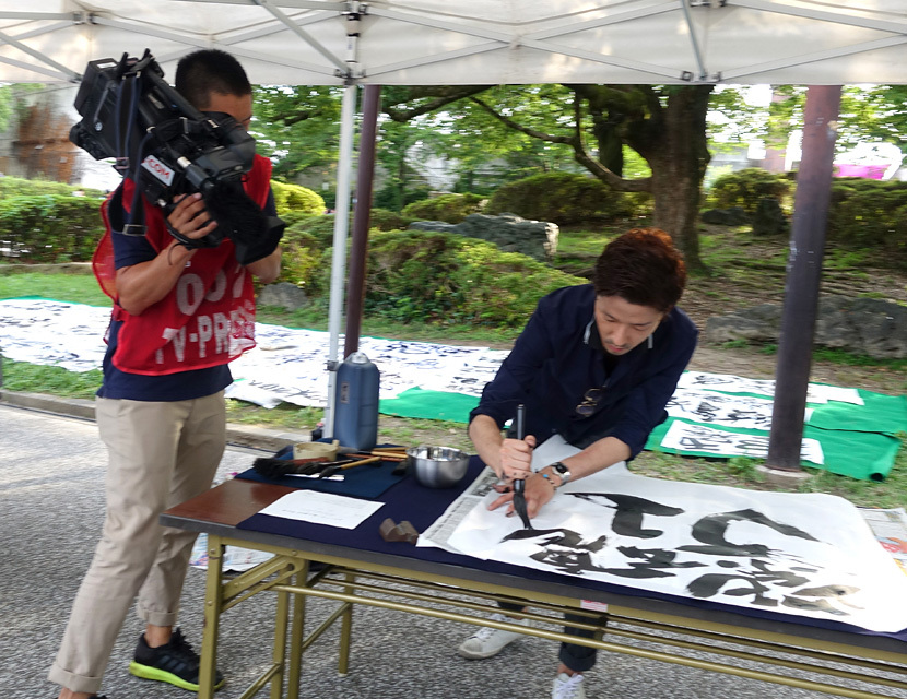 HOME > 作品紹介 > 京都サンガF.C. コラボ ゲーフラ一筆入魂 京都サンガF.C. × 祥洲 / 墨翔会「一筆入魂 ! 書で願いを」 2016 年 7 月 10 日 京都サンガサポーターご希望の言葉をその場でゲートフラッグに揮毫する人気イベント。 KBSテレビ「ぽじポジたまご」生出演、J:COMテレビのTV取材など 場所:京都 西京極陸上競技場 場外特設ブース Works一覧へ